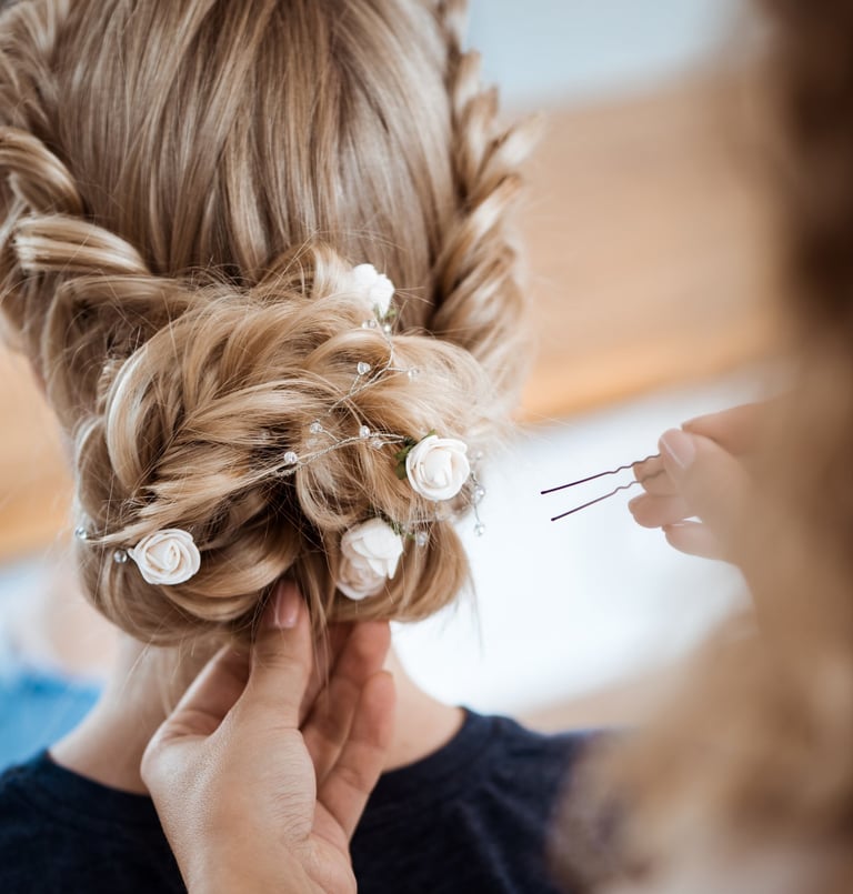 Produção completa para eventos especiais (festas, formaturas, casamentos, etc.). Criamos looks que valorizam seus traços.